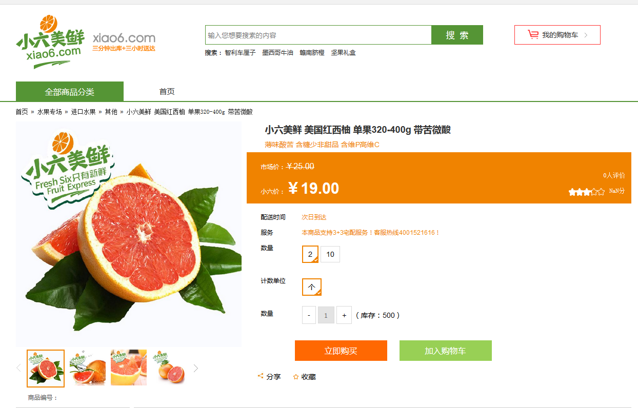 全国优秀的生鲜电商平台小六美鲜为消费者带来新鲜健康的优质绿色水果,只要接到订单,3分钟发货,保障水果的新鲜,让你体验最贴心的服务。