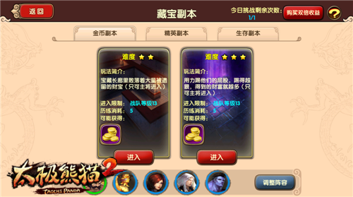 《太极熊猫2》中,货币主要分为金币和钻石两种,其中金币可用于提升英雄技能等级、强化角色装备、英雄品级进阶等等,用途非常多样,可以说是纳哈克大陆的必备物资。在初期不管是升级技能还是强化装备,很多玩家都会出现金币短缺的情况,那么如何在游戏中尽快获得金币成为土豪呢?小熊今天就为大家奉上一篇金币副本攻略,助你轻松成为“百万富翁”!