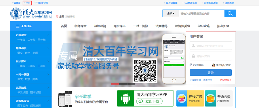 灵活有趣的互动课程,专业高效的服务团队,丰富的讲师管理经验,独一无二的网络技术,——“清大百年学习网”以共享优秀教学资源,共同发展网络教育为宗旨,汇集全国所有教学版本资源、课件资源,并集学、查、考于一体的综合性网络教育平台,通过实时在线的互动教学、图文并茂的随堂讲义、科学全面的学习测评,为中小学生带来富有成就感的在线学习体验。