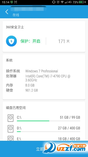 用360连回家及时查看电脑状态,电脑优化垃圾清扫轻松搞定