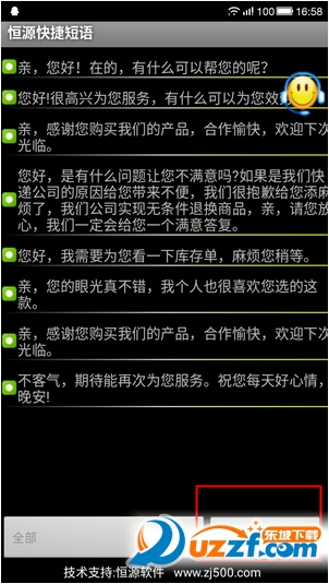 现在各种网店客服每天都需要面对不同的用户的提问,为了有效的提高客服的工作效率,这款恒源快捷短语app为大家提供了各种通用客服聊天短语,直接点击就可以发送指定内容,还支持图片发送。