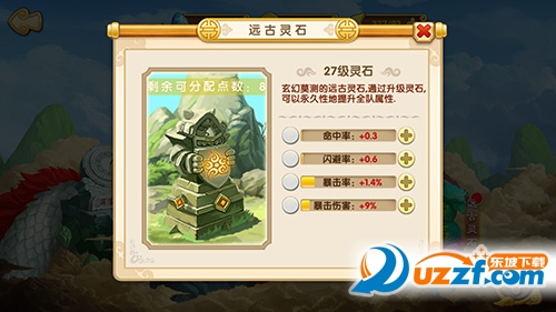 每天爬塔结束后不要忘了在“远古灵石”处分配属性点哦,这是一个提升战力的好地方。
