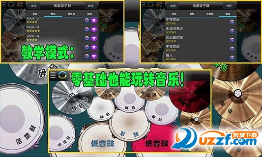 1、一款动感架子鼓打击乐器APP,应用特有的教程模式:可以让零基础的玩家,也能跟随电脑的指引,演凑出节奏动感的曲目。让玩音乐变得如此简单,只要你想学,定能凑出属于你的音乐乐章。一起摇摆,挥洒青春激情!