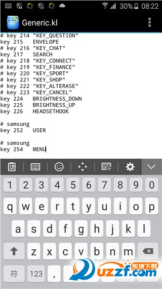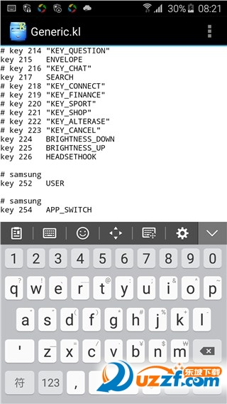 第二步:用R.E管理器进入system/usr/keylayout,把上面的挂载改为写,进入目录后把Generic.kl用编辑器方式打开,找到:key 254 APP_SWITCH,改为:key 254 MENU,保存退出即可。