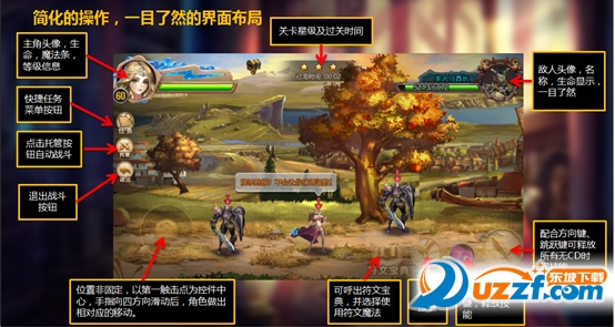 采用了360度无死角的摇杆控制,让操作体验更上一层楼,右边的攻击键和周边围绕的技能键可以让玩家更好的搭配技能的释放,但是相对的,跳跃键与攻击按钮就显得稍微远了点,小手的妹子们要注意啦,你们的挑战来了哦!