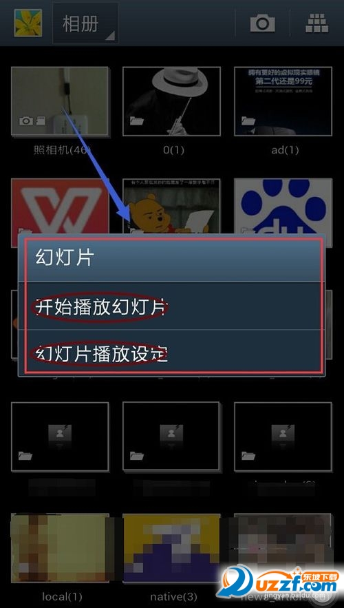 此时所有的照片都是静态的,我们需要逐个点击才能查看,然后我们点击手机的HOME键左侧的那个虚拟按键,就会在相册里弹出一个对话框,如图。