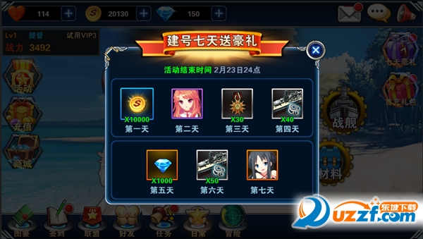 2.新手7天好礼:新手玩家前7天一定要按时登录游戏,第五天登录游戏,即可获得1000钻石的奖励。