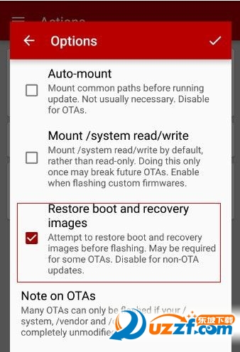 不一样的是选择完ota文件后,把restore boot and recovery images这个勾上,其他不要勾,点击右上角的勾确认,再点 flash 开始刷入。@G2N25[5E14R~(_AK9MRVM7.jpg