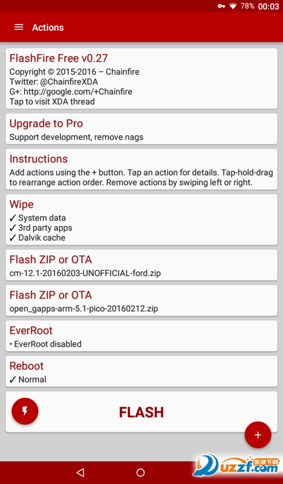 国外大神ChainFire开发的一款简单好用的刷机神器,它需要手机获取ROOT权限,如果不懂的朋友最好别轻易刷,它的功能很强大,还有备份的恢复的功能,小编这里附上FlashFire最新版下载及刷机教程!