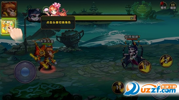 游戏副本中玩家操作任意一名神仙,阵容三名神仙会在左上角以头像存在。