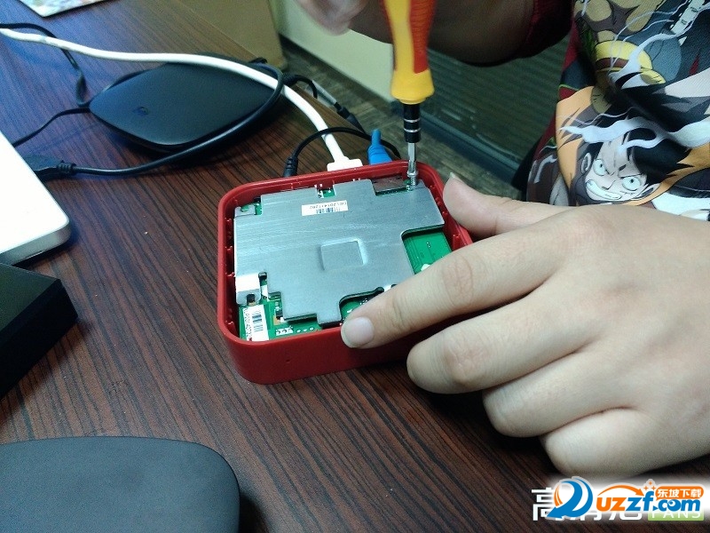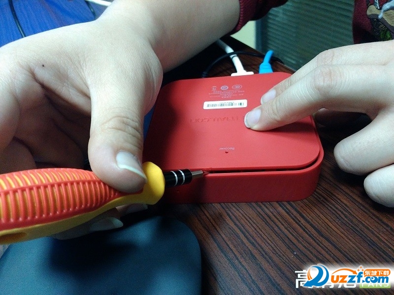 2.将盒子断电,用撬棒将盒子的底部撬开,先将四面都撬开一点,然后就可以取下底部了。