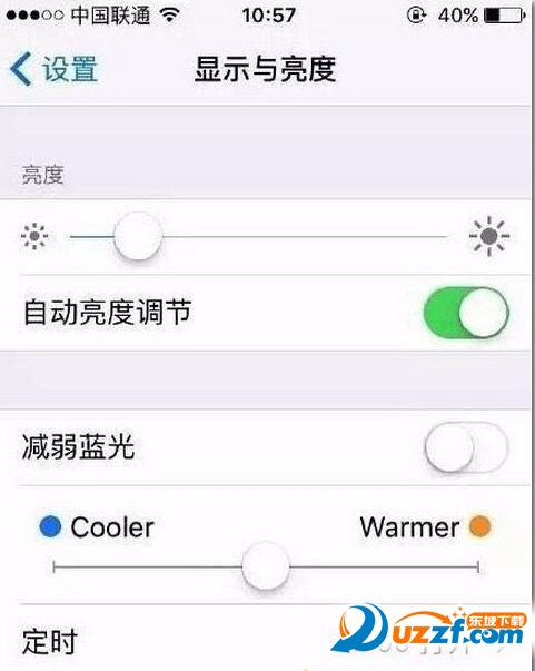 Night Shift Style iOS 9.3是减少亮度屏幕低于你的默认设置,可以达到的。