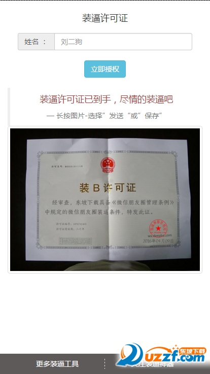 喜欢聊微信的朋友,你在微信里面有多少的朋友是非常的喜欢装逼的,喜欢装b的人士你可以试试给他们发个逼许可证,不知道怎么发的建议你来下载微信朋友圈装逼许可证图片生成器手机版!