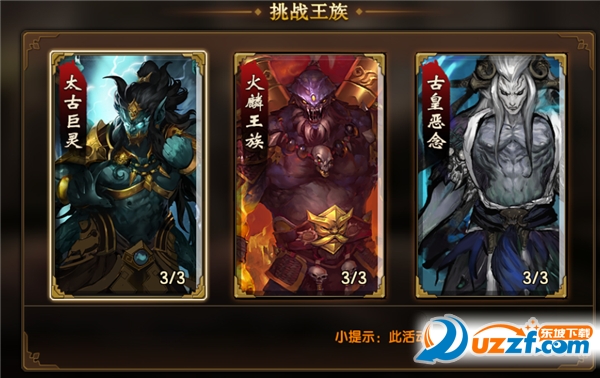 该玩法有4个BOSS可以挑战,分别为“太古巨灵” “火麟王族” “古皇恶念”和“血焰王族”