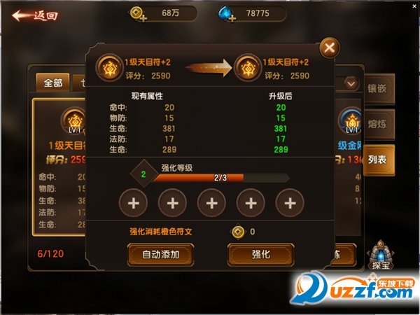在《天帝传说》中当符文品质提升到橙色时,可以对该符文进行强化了。