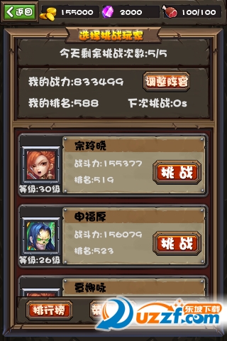 每天大大们都可以在竞技场挑战全服的其他玩家,如果打赢了,竞技场的排名就会上升。如果大大们刷新自己的历史最高排名的话,就能获得大量钻石奖励哦!