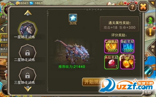 单人玩法,每天不限次数挑战,成功挑战每关的守卫可以获得大量的属性奖励以及额外的猎人称号,通关评分越高,奖励越好。