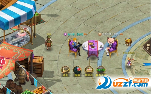 玩家可邀请其他玩家在主城中央共享精致点心,玩法中持续获得经验,1次持续15分钟,过程中还能进行送礼、捣蛋、加点心等有趣互动。