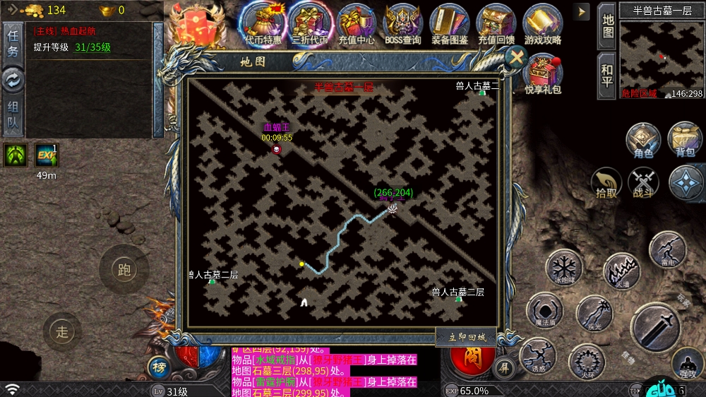 [打宝地图]只要等级达到无任何限制,打宝地图挂机刷怪可刷大量材料,是打料打装备的不二圣地。