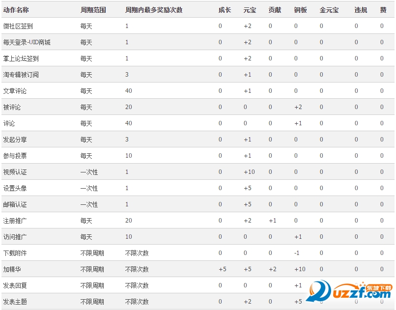 进行以下事件动作,会得到积分奖励。不过,在一个周期内,您最多得到的奖励次数有限制