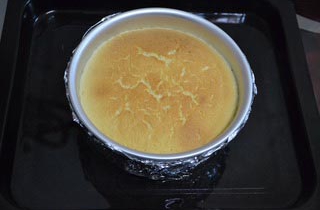 17.烤到蛋糕膨胀表面上色,用牙签插入没有带有蛋糕糊就表示烤好了。取出烤好的蛋糕放凉后脱模即可食用