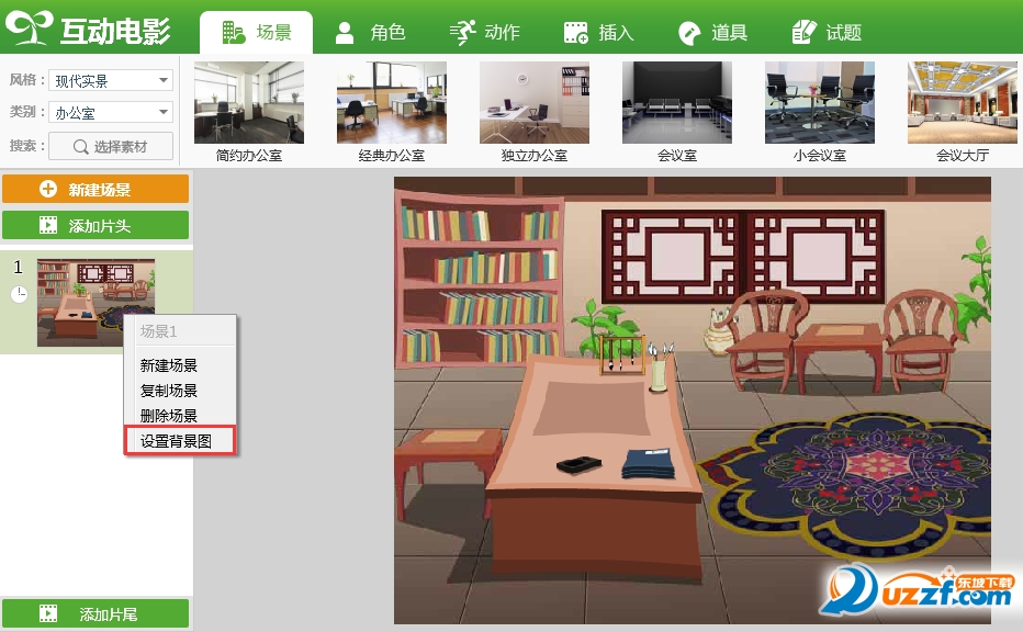 ④或使用鼠标右键单击场景菜单,自己设置背景图。