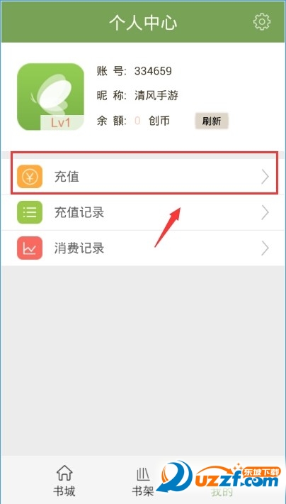 1、在我的界面点击充值;