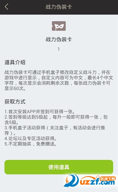 战力伪装卡说明:手机盒子用户专享道具,登录APP进行签到可获得。