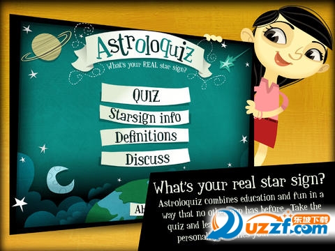 这款名为“Astroloquiz(性格占卜)”的应用其实是一款测试儿童性格的软件,提供了一项基于黄道12 宫的有趣的性格测试,其中包含48 种每天都会遇到的场景,每个场景都有一个相应的个性定义,选择对于场景你会做出的反应的选项,最终得出性格特征。除此之外它还拥有一个亮点,通过点击场景描述的图片,还会将本场景所代表的个性的定义朗读出来,活脱一本“有声图书”的架势。