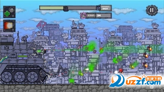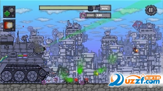 战斗开始之后坦克会自行前进,你需要做的就是如何合理利用坦克身上的这些武器,你可以点击任何一种武器展开攻击,机枪的射击范围有一定限制,玩家要上下划动来调整射击的位置,不过这些敌人的血量相当厚,想要无伤到达终点基本上是不可能的。