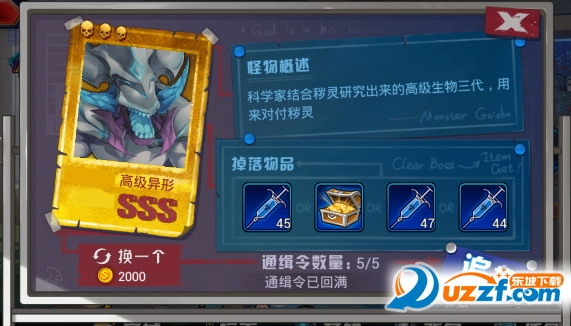 通缉令获得的奖励可以激活基因的基因药剂,可以并且每个小时增加一个通缉令,上限5个,打通缉令的怪如果打不过可以马上退出,不会扣掉通缉令,然后使用2000金币刷新怪物和奖励,难度有S、SS、SSS三个难度.