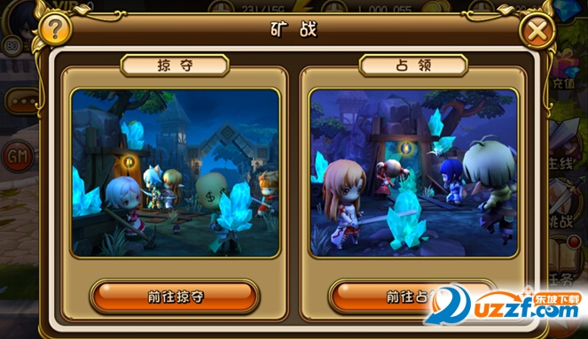 开启矿战系统后,主界面中【挑战】按钮,选择【矿战】即可进行矿战