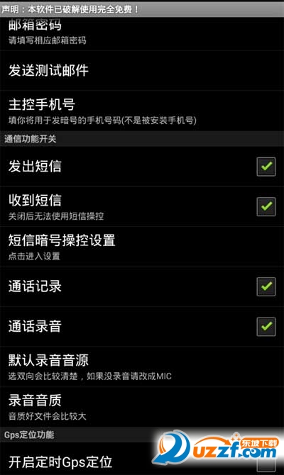 安卓监控V6.7破解版的主要功能有通话记录及录音,短信记录,及时定位,QQ微信聊天记录〈这项需要ROOT权限〉,环境录音。