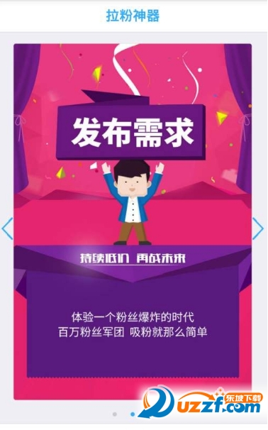 1、拉粉神器是一款专门为微商、微店、公众号服务的营销推广软件。我们拥有几十万的兼职人员,可以快速提高你的公众号粉丝,更可将您的产品、文章、H5小游戏等等瞬间在朋友圈引爆!