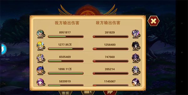 这个阵容主要输出在螃蟹,依次是冰河,那么为何选紫龙而不是牛,牛控制不是更好吗?首先牛出现几率不高,伤害也不够,紫龙伤害不高但觉醒技打3前排还降低韧性能为螃蟹输出创造良好条件(下面2张图片紫龙,螃蟹打出的伤害)
