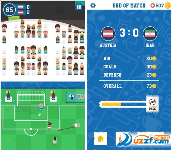 根据划动距离长短的不同,踢球的力度也会有所改变,为了更好地撕开敌人的防线,你可以算一下提前量,让前场的队员拿到球的同时,又可以跑进敌人防守的空档,然后射门,从传球方面来说还是讲究一定的战术的,这与其他挂羊头卖狗肉的足球游戏有着明显不同。