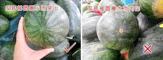 1、看瓜底部,圆圈越小的,而且瓜屁股是突出的,表示是甜瓜;反之,瓜底部圆圈大,而内凹的瓜不甜