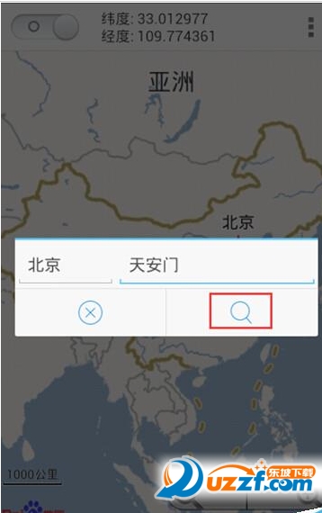 输入你想要定位的地点名称,例如北京某出名景点,然后点击「搜索」按钮