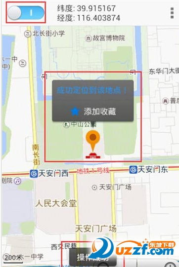 此时气泡上的按钮变为「添加收藏」,主界面提示「操作成功」,表示你已成功定位到新地点。