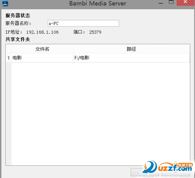 在桌面电脑上安装安装了斑比播放器的服务器之后,服务器就自动完成搭建。需要注意的 是服务器的ip和端口编号,这是手动完成配对的凭证。