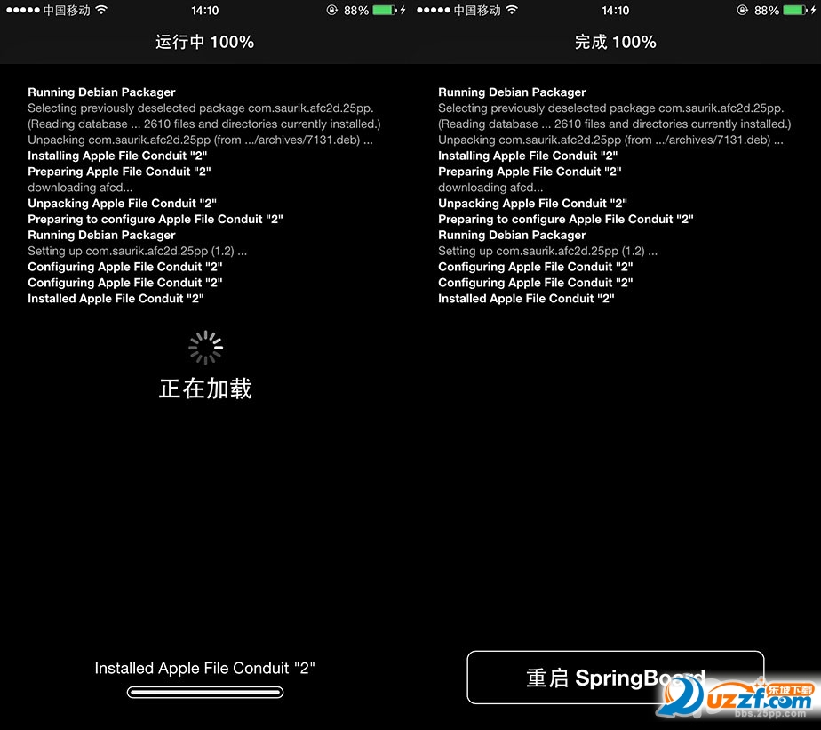 四、等待插件”正在加载“完成,点击”重启 SpringBoard“即可