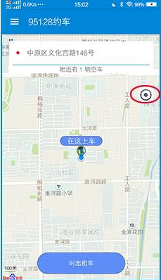 1. 安装好,打开APP会自动定位到您所在的位置,点击地图右上角的图标,地图会自动回到您所在的位置,同时显示附近出租车的数量,如下图所示;