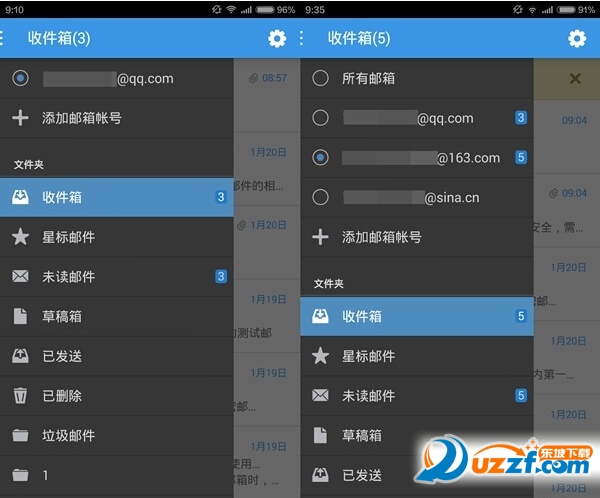 有的用户可能有多个不同的邮箱,在用手机管理这些邮箱中的邮件时可能会有些麻烦,有时要下载两个不同的邮箱APP才能同时管理。而360加密邮另一个优势在于它可以添加多种邮箱,并对可以这些邮箱中的邮件实现同时管理。