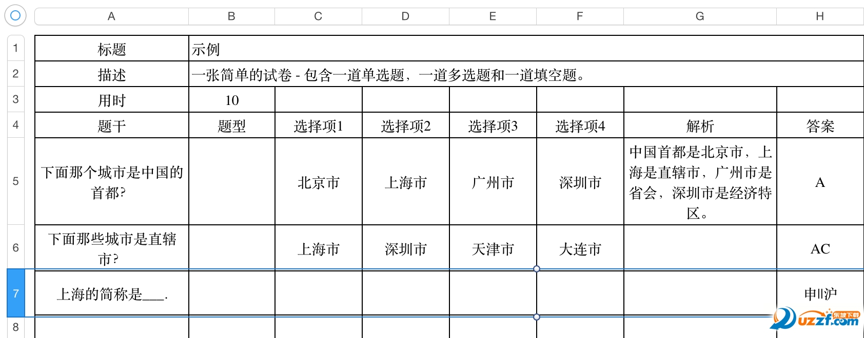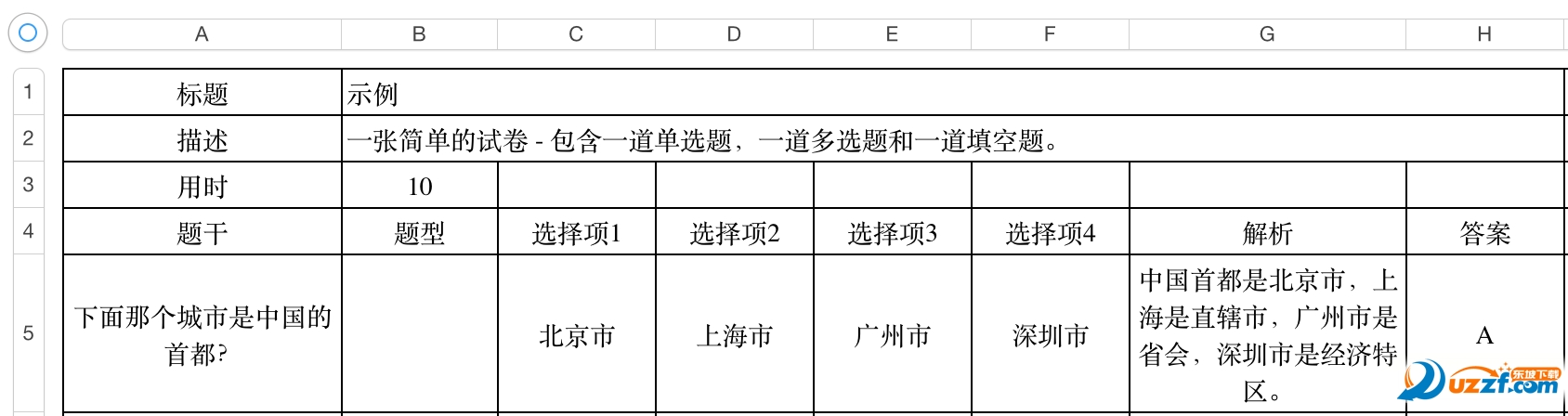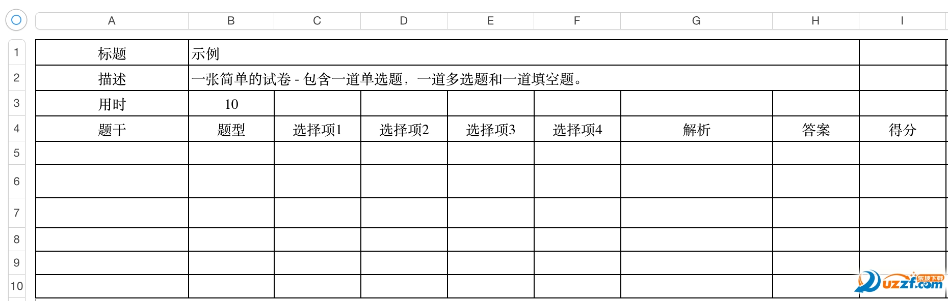 你可以点击下面的按钮下载这个示例文件并且在文件中添加你自己的题目