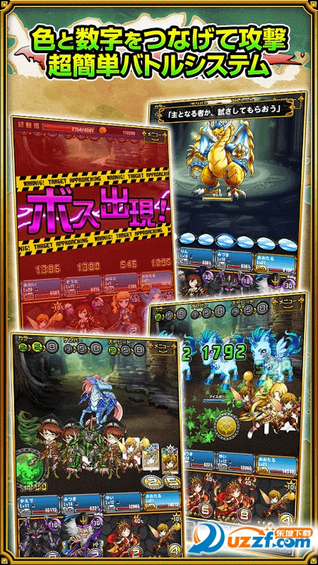 在战斗中,玩家通过连接起同样的颜色和数字,来进行洗牌或者发动必杀技,享受到具有高战略性战斗的乐趣。游戏的任务分为单人模式和联机模式两种,玩家既可以自己一个进行游戏,也可以和好友组队一起攻略强敌。