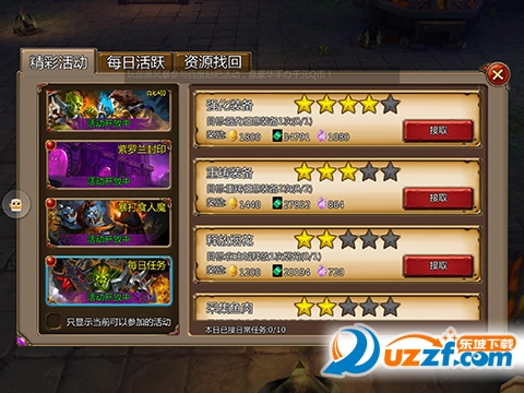 每日任务:每天10次任务,(VIP等级越高任务次数越多)任务分(1★~5★)星级等级越高经验越高,但是每日任务是随机刷出等级不同,建议每小时接去最高星级任务,经验最大化,土豪也可以用钻石刷一次20钻哦。