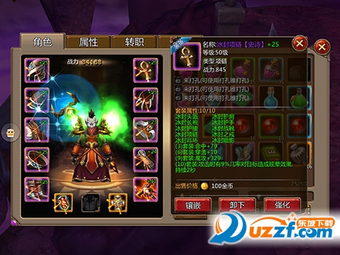 英雄难度★★★★★(需20体力)等级40 50 60随机爆出紫色史诗套装属性分为1~5排随机属性。