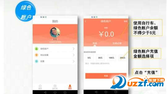 实用自行车、绿色账户余额不得少于5元,选择绿色充值金额选择项,点击充值