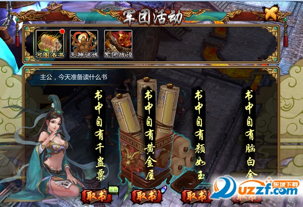 当你加入军团之后,每天就多了一次额外的获得体力的机会。在“河图洛书”中只要选择---书中自有脑白金,就会获得一定的体力恢复。至于数量的话就要看你的运气了,可能会获得多到用不完的体力哦。