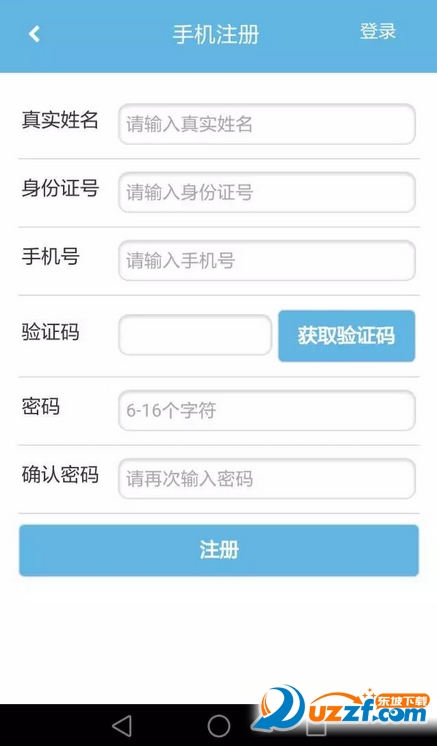 输入本人姓名、身份证号、手机号、初始密码等信息后,获取手机验证码,输入验证码后,点击“注册”按钮。